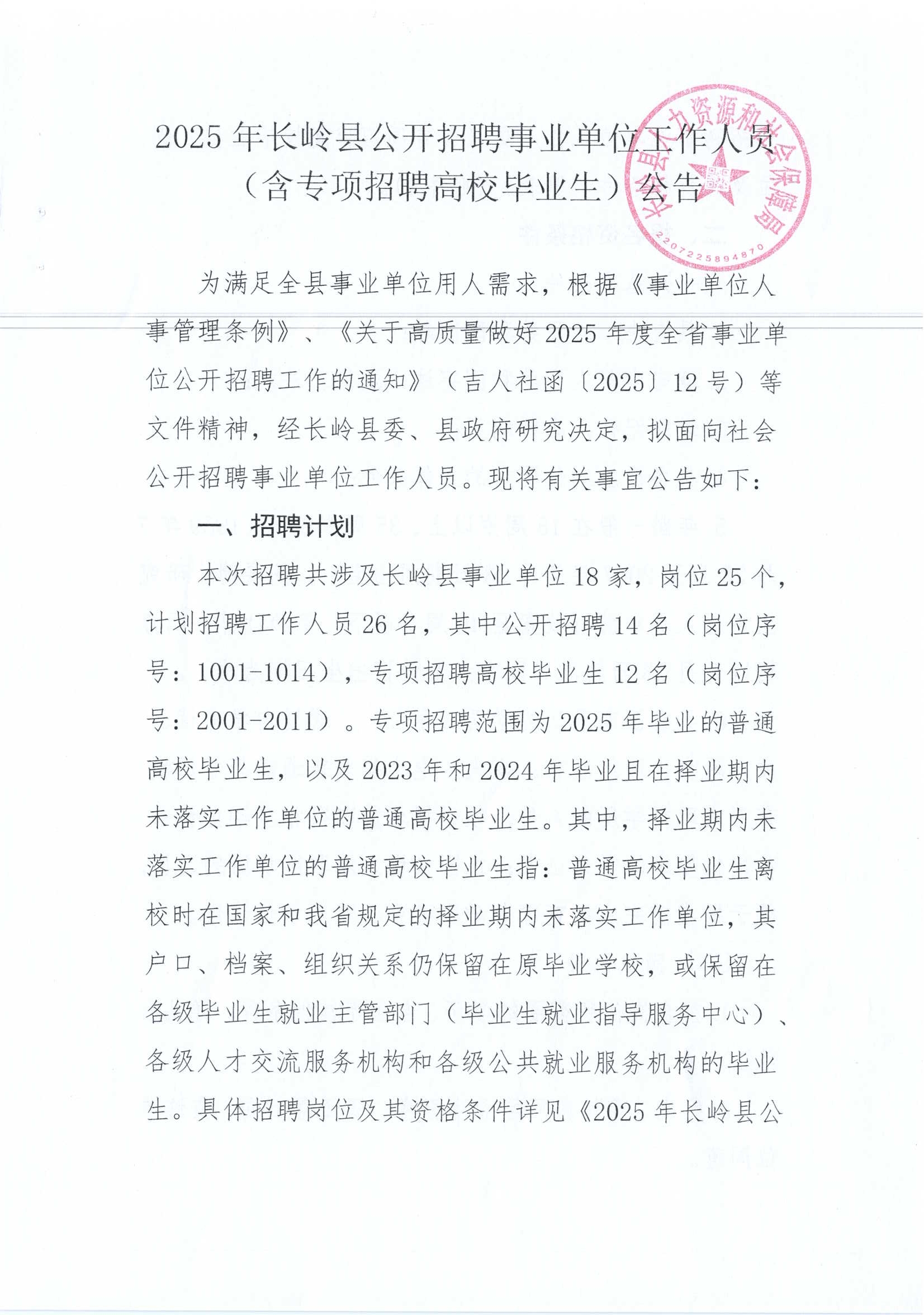 2025年松原長(zhǎng)嶺縣公開招聘事業(yè)單位工作人員(含專項(xiàng)招聘高校畢業(yè)生)公告